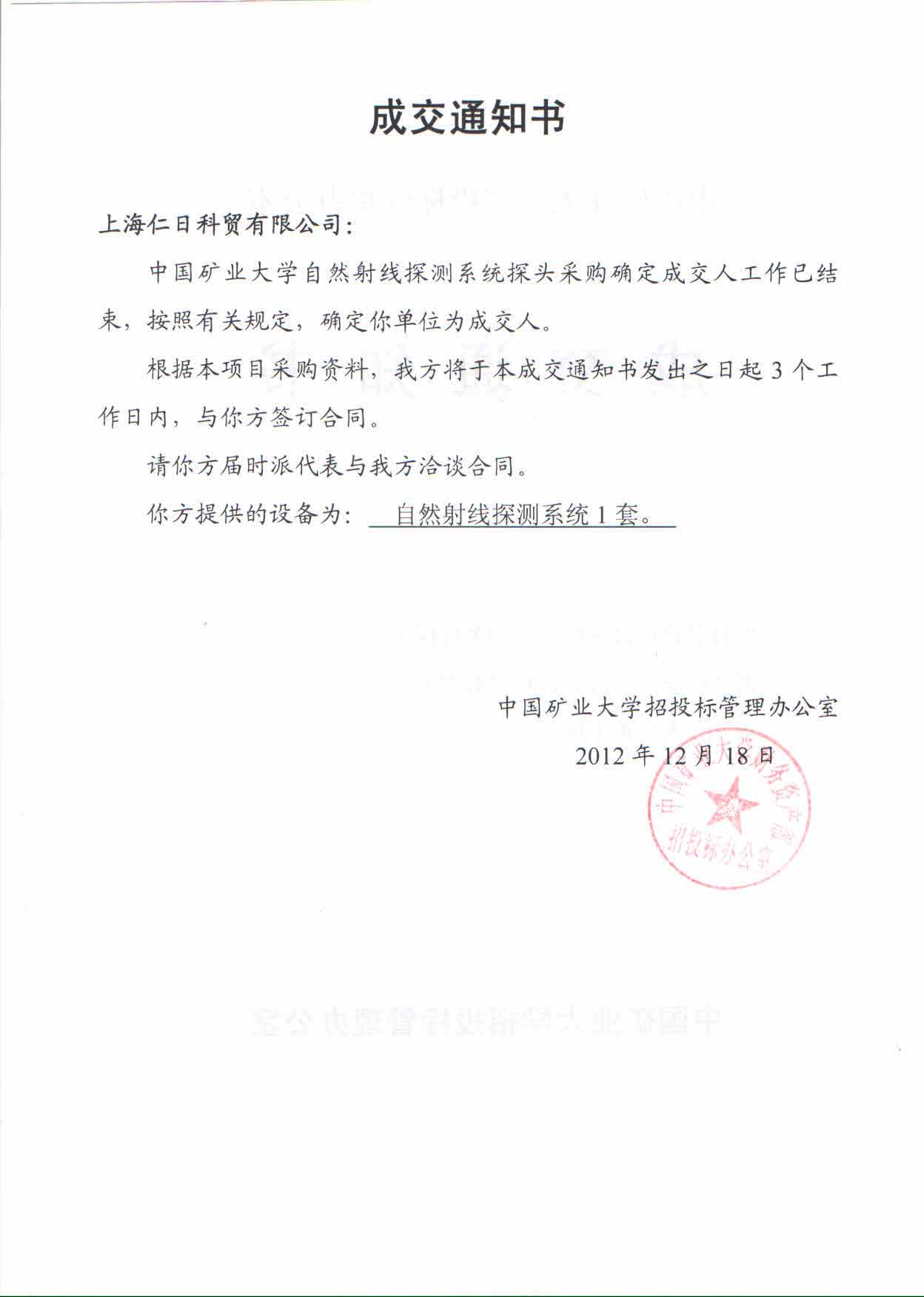 我公司中標(biāo)中國(guó)礦業(yè)大學(xué)(射線探頭定制)項(xiàng)目