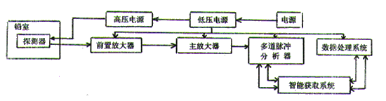 能譜數(shù)據(jù)獲取與處理系統(tǒng):由ADC智能獲取接口和計(jì)算機(jī)組成。探測(cè)器到ADC進(jìn)行!獢(shù)轉(zhuǎn)換,智能獲取接口對(duì)ADC的每個(gè)復(fù)換碼進(jìn)行實(shí)時(shí)處理、顯示、數(shù)據(jù)壓縮,并每隔一定時(shí)間將已壓縮的數(shù)據(jù)由接口傳送至計(jì)算機(jī),已進(jìn)行譜顯示的更新,每個(gè)譜的長度、寬度、停機(jī)方式和條件,起、停都由計(jì)算機(jī)獨(dú)立控制。在測(cè)量過程中,計(jì)算機(jī)可以停機(jī)或處理其它數(shù)據(jù)。