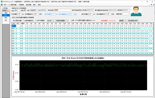 8、管理軟件:可選配強大的RenRiPersonal個人劑量管理軟件,軟件可計算日累積、月累積、年累積、輻照時長、日平均劑量率、扣除或不扣除本底輻射,瞬間顯示86400條/天的劑量率,以圖譜或文字的方式展現(xiàn)數(shù)據(jù);可為特定用戶提供定制開發(fā)或二次開發(fā)。